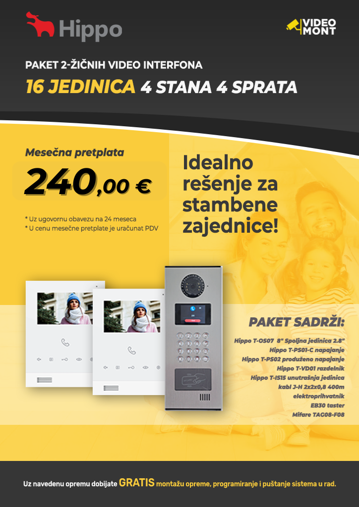 Paket 2-zicnog Video sistema – 16 jedinica 4sprata 4stana – VI019