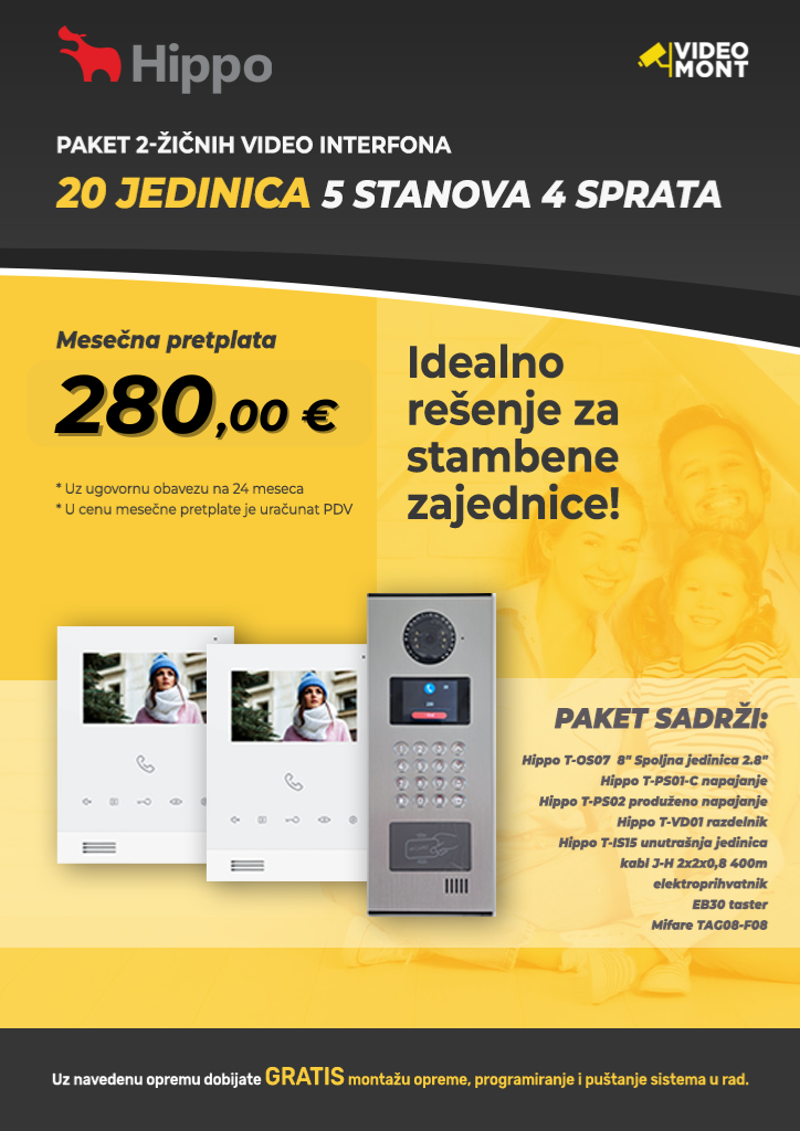 Paket 2-zicnog Video sistema – 20 jedinica 4sprata 5stanova – VI020